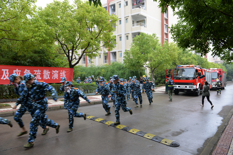 随后,学生公寓5栋、6栋1200余名新生参加了消防应急疏散演练,随着警报声的拉响,同学们按照指定的路线,用毛巾捂住口鼻,向着安全出口迅速疏散,有序撤离到运动场的指定区域待命,随即清点人数,层层上报,整个疏散过程用时2分多钟,1200余名师生安全疏散完毕,整个过程紧张有序,实用性强,达到了预期效果。