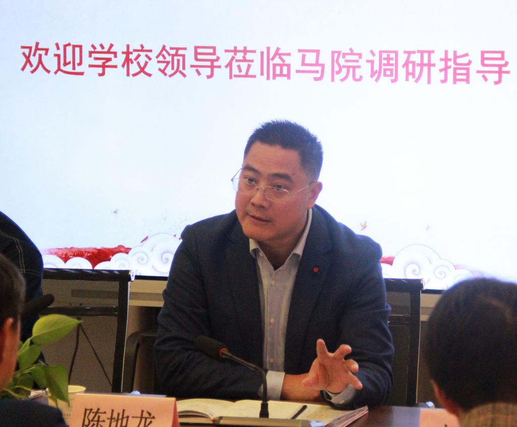 陈地龙校长作总结讲话。他肯定了马院近年来在抓思政课程、教学质量改革等方面取得的成绩,并针对调研中反映的问题,进行了工作指导和要求:一要深入学习贯彻习近平新时代中国特色社会主义思想,按习近平总书记要求,做到“六要”“八个相统一”,成为习近平新时代中国特色社会主义思想的宣传者和传播者;二要在学校发展的关键时期,凝心聚力,担当作为,砥砺奋进,为培养德智体美劳全面发展的社会主义建设者和接班人贡献力量;三要把握新时代新形势要求,落实立德树人根本任务,正确处理好个体与整体关系,实现个人发展与学校发展同向同行;四要注意挖掘凝练学院特色,以点带面,推动学院实现高质量发展,提升学院核心竞争力。