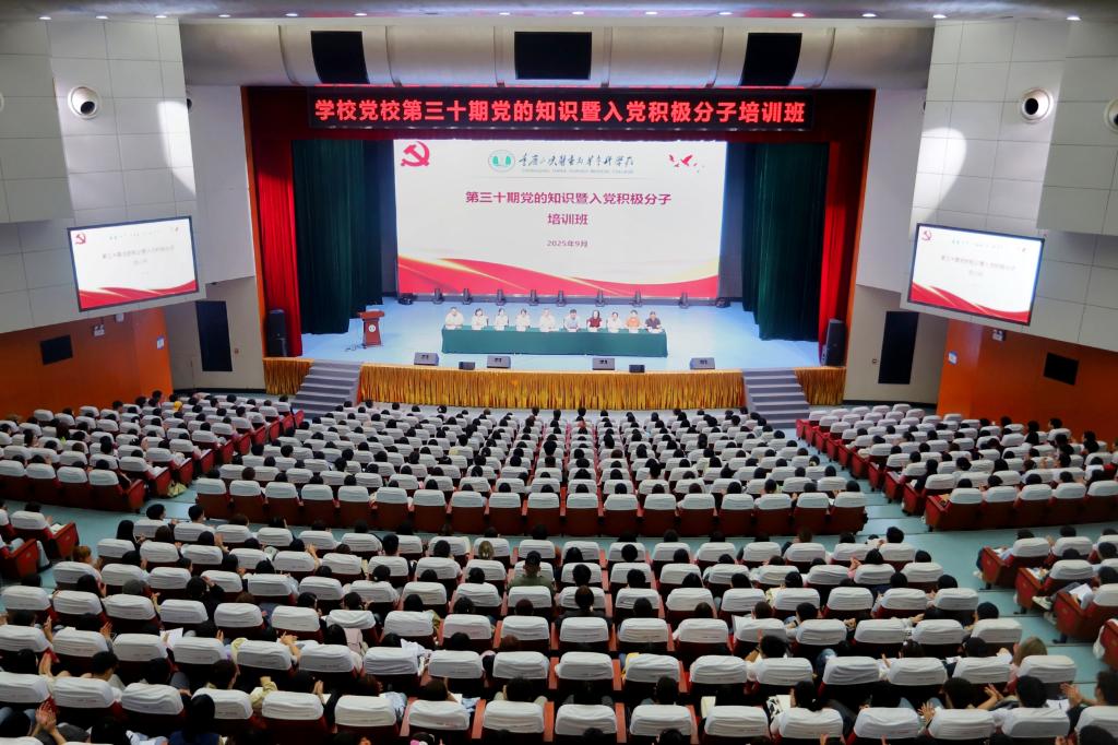 2025年9月23日-25日,学校党校第三十期党的知识暨入党积极分子培训班在学术中心演播大厅举行。根据培训日程安排,学校党委书记、党校校长曹毅,党委委员、副校长、党校常务副校长张建忠等6名党员领导干部分别从党的历史、党的领导核心作用、党的性质和宗旨、党的纪律等方面为本期780余名学员授课。