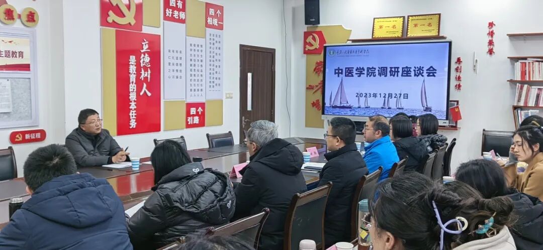 学校党委副书记、校长冉隆平深入中医学院开展调研和联系师生工作。座谈会上,冉隆平与师生代表就人才培养、教育教学、中医文化建设、师资队伍建设、校企合作、临床及科研问题进行深入交流,并逐一回应大家的关切问题。他要求中医学院要主动按国家、市委对中医药的重大战略部署,围绕学校中心工作和发展大局,突出中医优势,发挥文化育人特色,攻坚克难,为学校高质量发展作出更大的贡献。