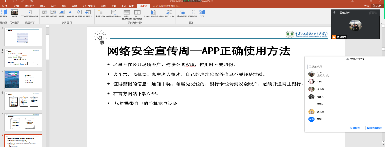 为深入贯彻落实习近平总书记关于网络强国的重要思想,进一步推动我校网络安全教育宣传,营造安全、健康、文明、和谐的网络环境,9月6-9日,公共基础部以“畅游网络 安全你我”为主题,先后组织了长达20学时的网络安全知识进课堂活动,共有550余人次学生参与学习。