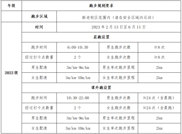 6.同学们应根据自身身体实际,切勿盲目追求跑量和跑次,以健康跑为原则。校内打卡点节假日正常统计跑步里程和跑次。