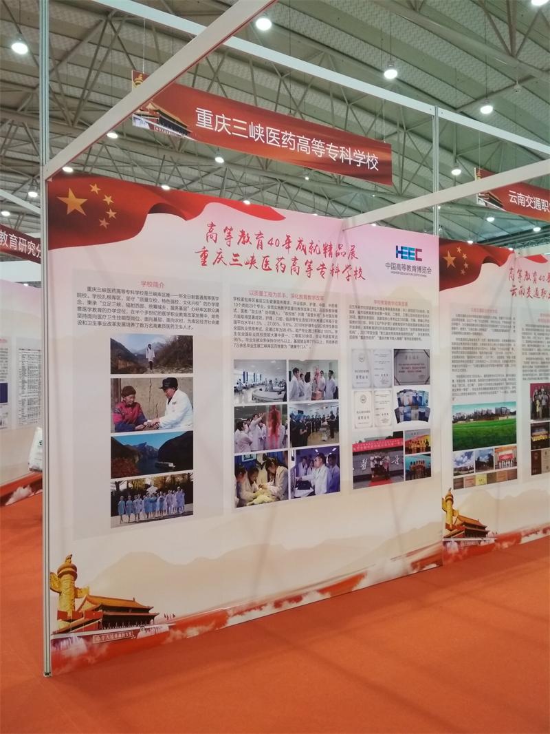 “高等教育40年精品成就展”以把准国家战略发展之脉,稳抓高等教育人才培养之本,深化创新创业教育改革之举,开拓国际交流合作之局,推动高职教育产教融合之势为指导,展示了改革开放40年来我国高等教育发展成就。全国67所高校(包括北京大学、复旦大学、南京大学、上海交大、四川大学等双一流高校)悉数参与,中国高等教育学会的10个分支机构,四川、重庆等省市积极参与,以展板、视频等多种形式集中展示改革开放特别是十八大以来,高等教育领域在人才培养、师资建设、规模发展、办学条件、科研转化、社会服务、综合改革和国际竞争力等多方面取得的辉煌成就。我校有幸作为全国唯一医类院校与北京大学等67所高等院校共同展出,学校“扎根库区办人民满意的医学教育”为主题的精品特色展览吸引了不少与会者的眼球,并受到教育部、中国高等教育学会等领导的一致认可与称赞,并寄语学校:新时代开启新征程。