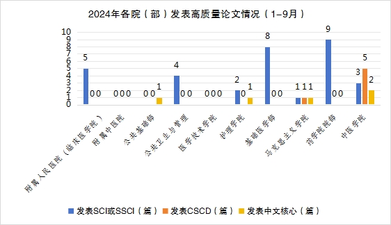 图2 2024年各院(部)发表高质量论文情况(1-9月)