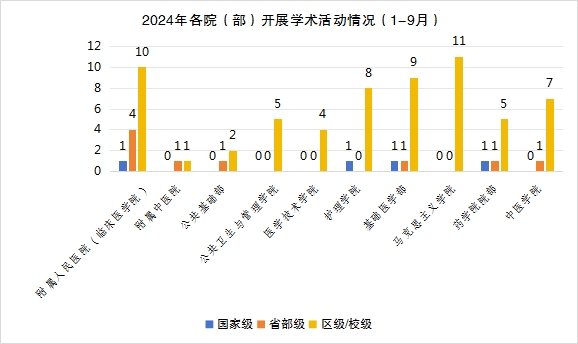 图3 2024年各院(部)开展学术活动情况(1-9月)