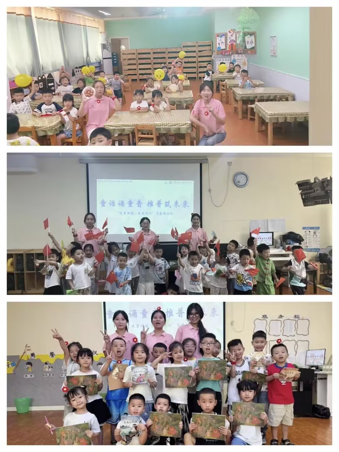推普服务队在汉葭街道苗都大地幼儿园,组建 3个班级,开展“推普+健康”儿童公益课。利用汉语言文学、思想政治教育和预防医学专业优势,善用讲、学、练方式陪伴学龄前儿童提升普通话使用能力,将民族团结的种子扎根在儿童心中,激发儿童学习和使用国家通用语言文字的兴趣和热爱 。队员利用蔬果实物模型和健康安全类视频讲解营养膳食知识、口腔知识、眼视光知识和安全小贴士等内容,完善幼儿教育服务的基本内容,全方位铸牢其健康成长的“防护墙” 。