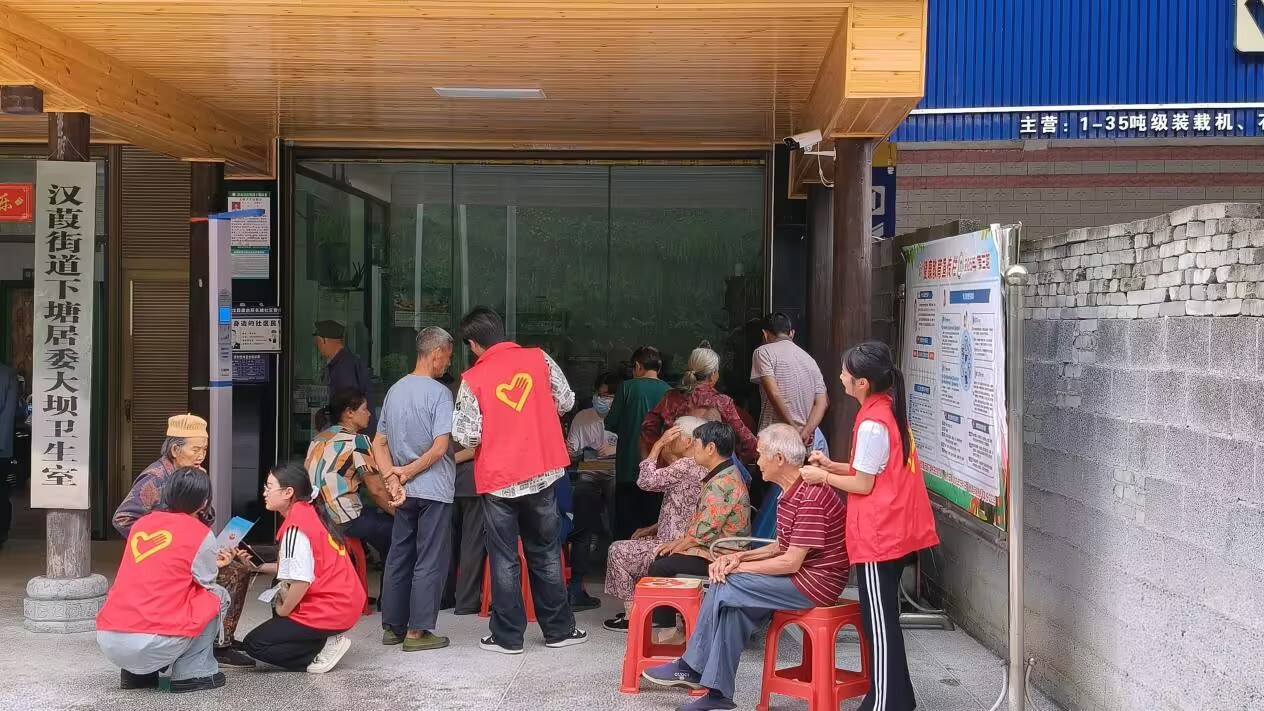 推普服务队走进彭水县汉葭街道、柏杨居民委员会,协助汉葭医院完成 2025 年村级老年人体检,开展“推普+急救知识宣传”主题活动。在公卫医师刘洪志手把手指导下,志愿者用通俗易懂的话语向村民解释体检流程和相关项目,将“乡音”和普通话融合,讲解肺结核防治、预防高血压及糖尿病等常见慢性病管理知识,并发放健康宣传手册。并走访了 10 户家庭,针对性地给予基础健康建议和家庭日常用药的注意事项。积极推广普通话,从紧急场景、医患沟通和数字生活适应等方面让村民认识到普通话在日常生活中的重要性。同时,在彭水县汉葭街道和红军渡广场周边,以《行走苗乡:彭水普通话应用调研》为题,推普服务队开展线上和线下实地调研。