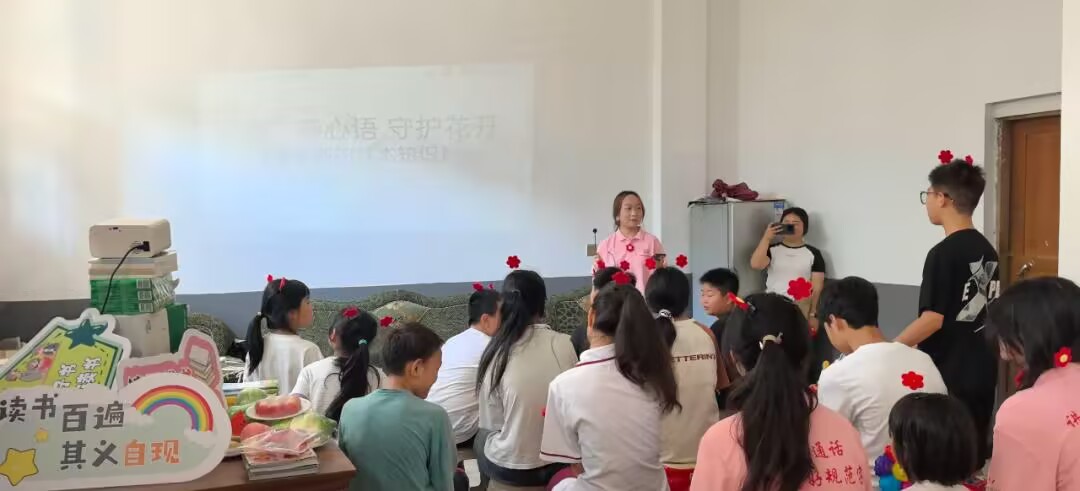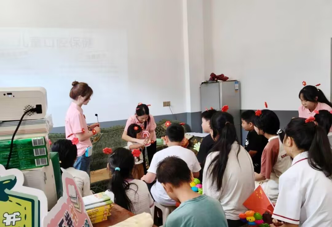 推普服务队去到绍庆街道弹子社区 4 组,面向儿童开展“推普+健康”主题活动。推普服务队将普通话推广与中华优秀传统文化传承相结合,采用生动的教学方法,指导儿童学习标准的普通话发音、语调与语速,纠正发音错误。通过讲述中国神话故事和诵读少儿国学启蒙读物,引导乡村儿童在规范使用普通话的过程中深刻感受中华文化的博大精深。随后,推普服务队利用膳食宝塔、果蔬模型等实物给儿童讲解每日健康饮食结构,帮助儿童掌握“吃、动、减”的健康“科学密码”。讲解儿童口腔健康知识,用口腔模型展示标准圆弧刷牙法,并进行实操演练。以“‘青’听心语,守护‘花’开”为题,讲解了正确应对青春期身心变化的方法。
