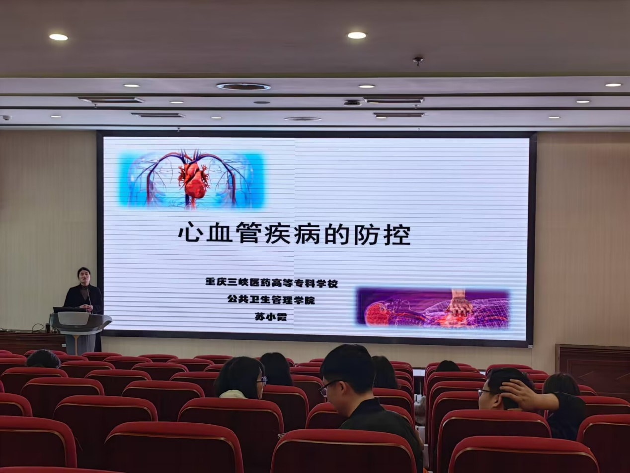 随着社会的发展和生活方式的改变,心脑血管疾病成为影响全球公众健康的主要问题。为了让老师们认识到心脑血管疾病的危害,提高健康意识、自我保健能力,2023年12月6日下午,重庆三峡医药高等专科学校公共卫生与管理学院在图书馆B201报告厅成功举办了《心脑血管疾病的预防与控制》讲座,公共卫生与管理教研室苏小霞老师主讲了本次讲座。