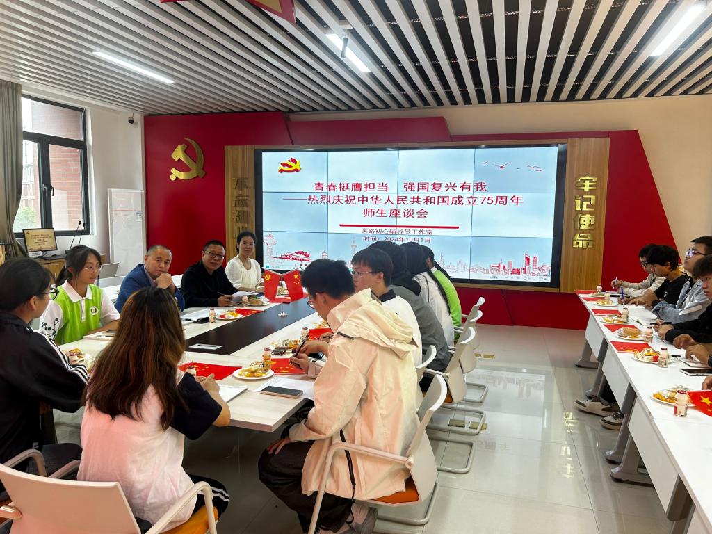 10月1日,支部在组织学生参加完成升国旗仪式后,上午9:30在支部513党建室,举行“青年挺膺担当 强国复兴有我——热烈庆祝中华人民共和国成立75周年”师生座谈会。