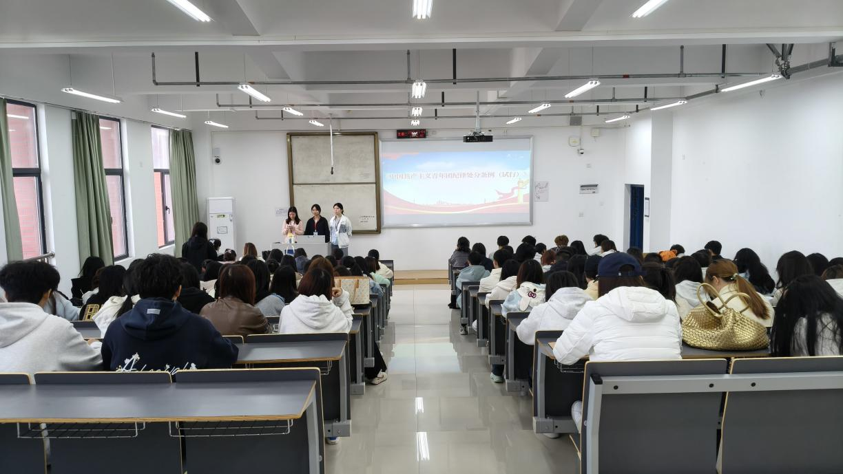 为进一步强化学生干部队伍的纪律作风建设和思想政治引领,切实提升学生组织的凝聚力与战斗力,公卫学院分团委于2025年11月4日在第四教学楼401教室,组织学生会和社团负责人开展《中国共产主义青年团纪律处分条例》(以下简称《条例》)专题学习会,110余名学生参加。