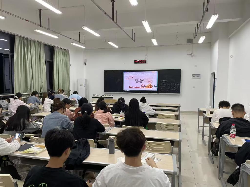 为贯彻落实《重庆市打击治理跨境赌博工作领导小组机制办公室和重庆市全民反诈专项行动指挥部办公室关于印发“拒赌反诈校园行”主题宣传月活动方案的通知》,进一步构建和谐文明、健康向上的校园文化氛围,切实提高学生拒赌反诈的意识和能力,结合学院实际,护理学院52个在校班级开展了“拒赌反诈校园行”主题班会活动,本次活动共覆盖3000余名学生。
