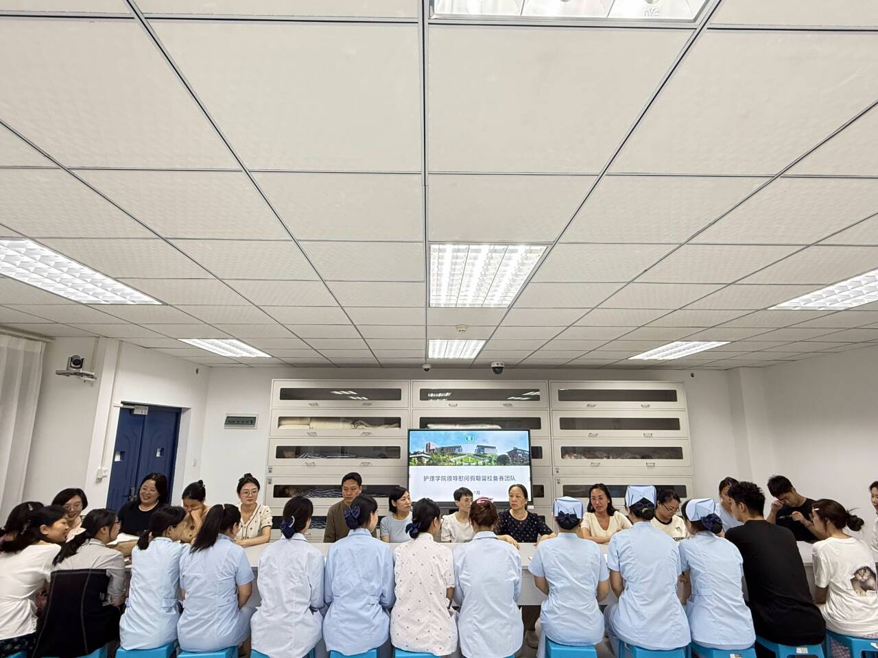 7 月 8 日,护理学院党总支书记、院长左凤林,党总支副书记覃艳,副院长李为华、邓菲菲一行到学院护理实训中心,开展国赛竞赛推进会并慰问留校备赛团队,为师生们加油鼓劲。