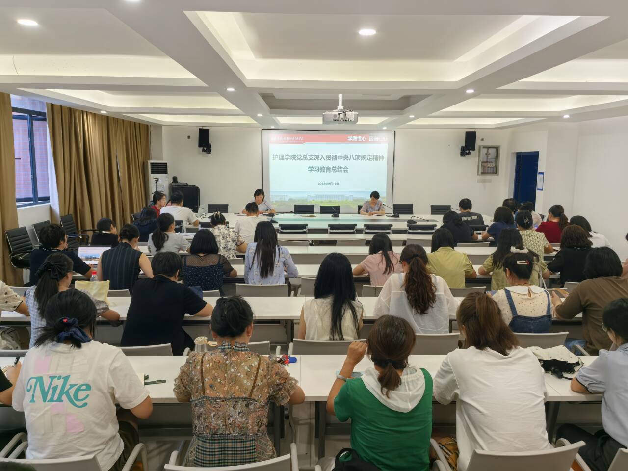 9月16日下午,护理学院党总支于B6-315会议室召开深入贯彻中央八项规定精神学习教育总结会,传达习近平总书记关于深入贯彻中央八项规定精神学习教育的重要指示精神,总结党总支学习教育成效,安排部署巩固学习教育成果、推动作风建设常态化长效化工作。全院教职工参会,会议由党总支专职副书记覃艳主持。