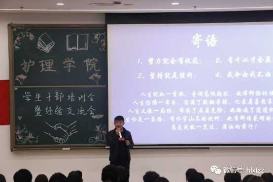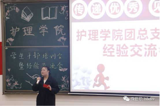 2019年11月15日,三峡医专护理学院“国奖分享交流会”顺利进行,200余名来自2019级班级学生干部和团总支学生会成员参加。本次会议设置了两个流程,团总支书记王培培进行学生干部实务能力培训,优秀学生干部代表—国家奖学金获得者分享个人学习工作经验。
