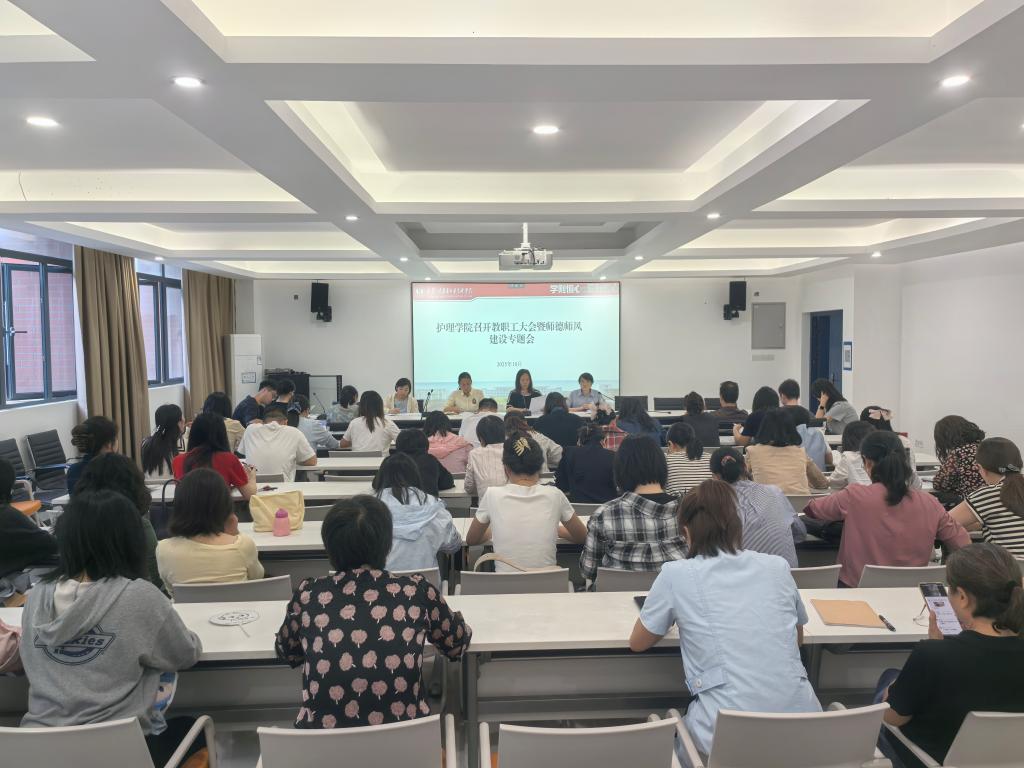 为深入学习贯彻党的教育方针,全面落实立德树人根本任务,进一步加强和改进新时代师德师风建设,提升教师队伍思想政治素质和职业道德水平,10月14日下午,护理学院在315会议室召开全体教职工大会暨师德师风建设专题会。会议由学院专职副书记覃艳主持。