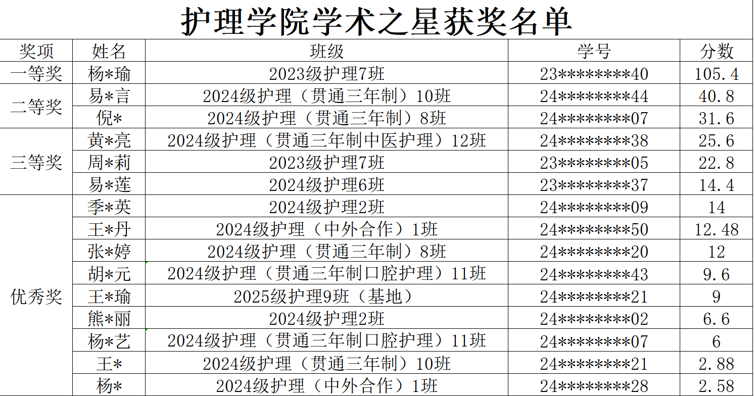 全面落实立德树人根本任务,营造积极向上、严谨求实的校园学术氛围,树立学术表现优异、科研能力突出的学生榜样,引导学生树立正确的学术价值观与远大理想,护理学院学习部组织开展“学术之星”评选活动。