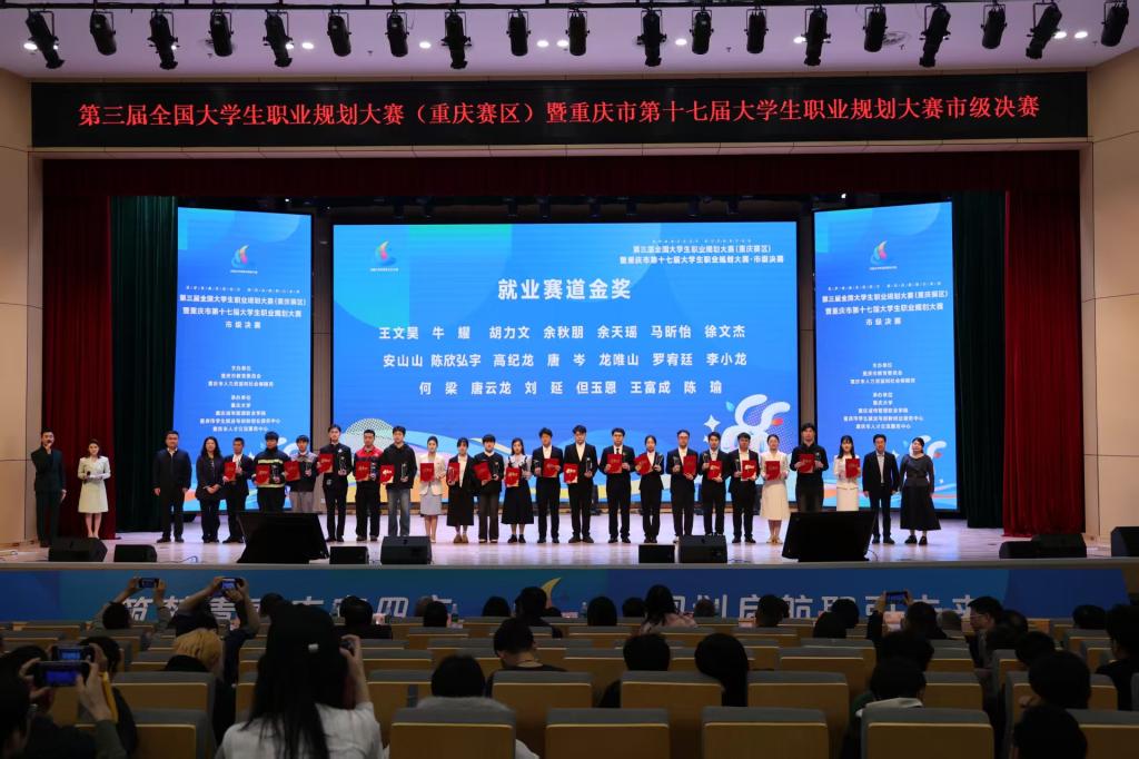 近日,第三届全国大学生职业规划大赛(重庆赛区)暨重庆市第十七届大学生职业规划大赛市级决赛圆满落幕。大赛以“筑梦青春志在四方,规划启航职引未来”为主题,由市教委、市人力社保局联合主办,经大赛市级复赛选拔,100余人晋级市级决赛。我校四名参赛选手发挥出色,最终斩获市级金奖2项、银奖2项,其中2位选手晋级国赛,彰显了学校在就业育人和人才培养方面的扎实成效。