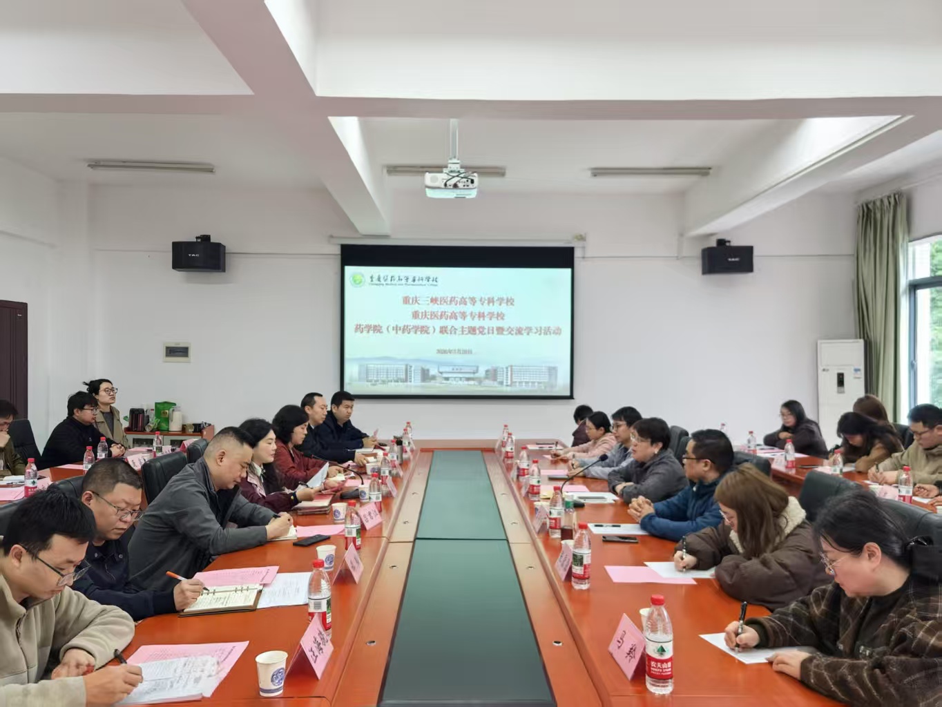 为强化党建引领,探索党建与业务深度融合的有效路径,3月26日,药学院党总支组织20多名党员教师,与重庆医药高等专科学校药学院联合开展党建交流座谈暨红岩精神主题党日。重庆医药高等专科学校药学院院长唐倩主持。