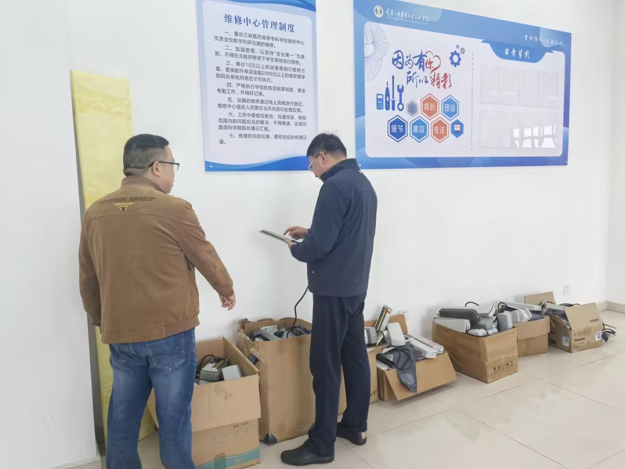 冉隆平对维修中心师生展现出的工作面貌和投入状态表示了肯定,并对后续工作提出指导意见:一是组建专门团队,主动联系周边医学院校和医疗机构,逐步拓展维修服务范围,提升服务口碑;二是优化内部激励与报酬分配机制,调动师生钻研技术、参与服务的积极性;三是以迈瑞医疗合作为切入点,推动专属维修点的设立,积极探索可持续运作模式;四是完善管理流程,健全经费使用与应急采购机制,提升工作效率。