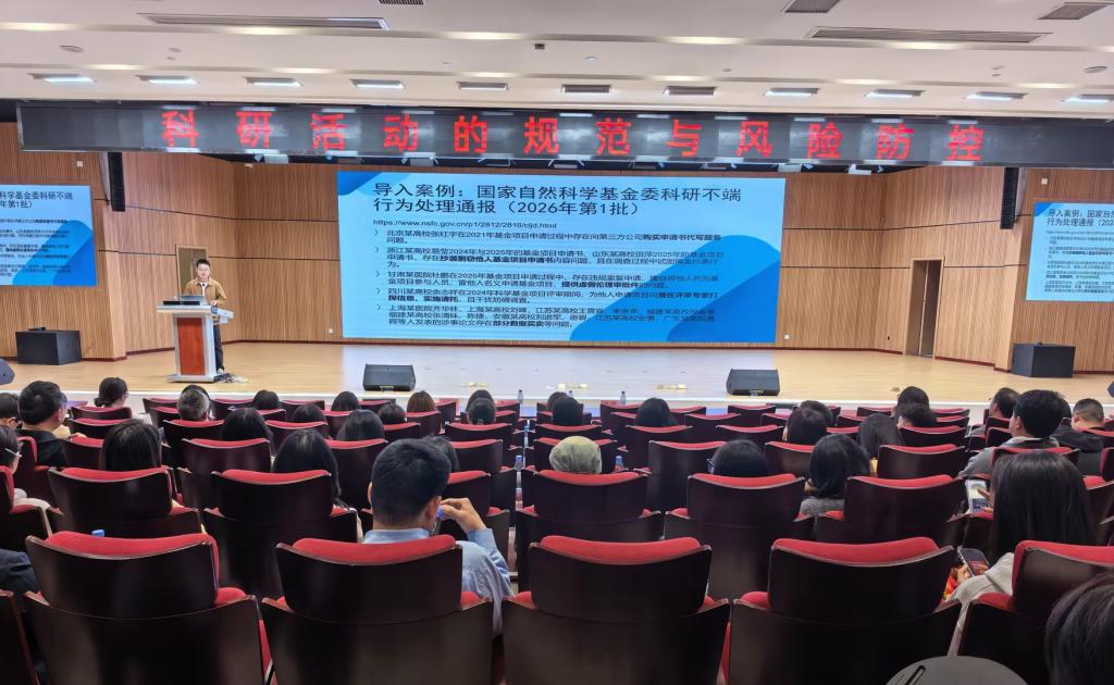 为强化科研诚信建设、规范科研行为,提升全校科研人员的合规意识与风险防控能力,营造风清气正的学术生态,2026年4月10日,“科研活动的规范与风险防控”专题讲座在四教学术报告厅顺利举行。本次讲座特邀西南大学商贸学院张麒麟副教授担任主讲,学校科研管理部门、各院部负责人,以及科研工作者和学生代表共计200余人参加活动。