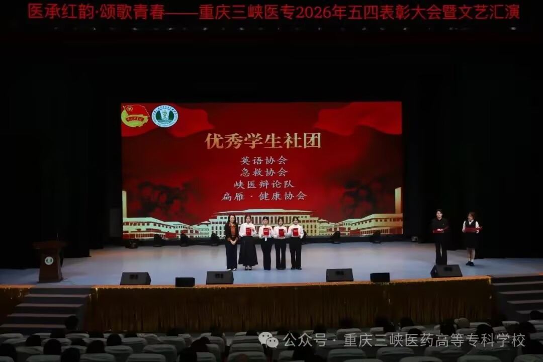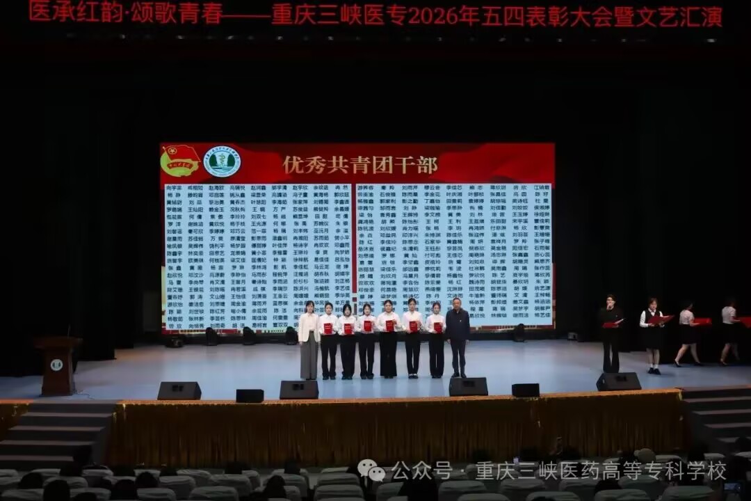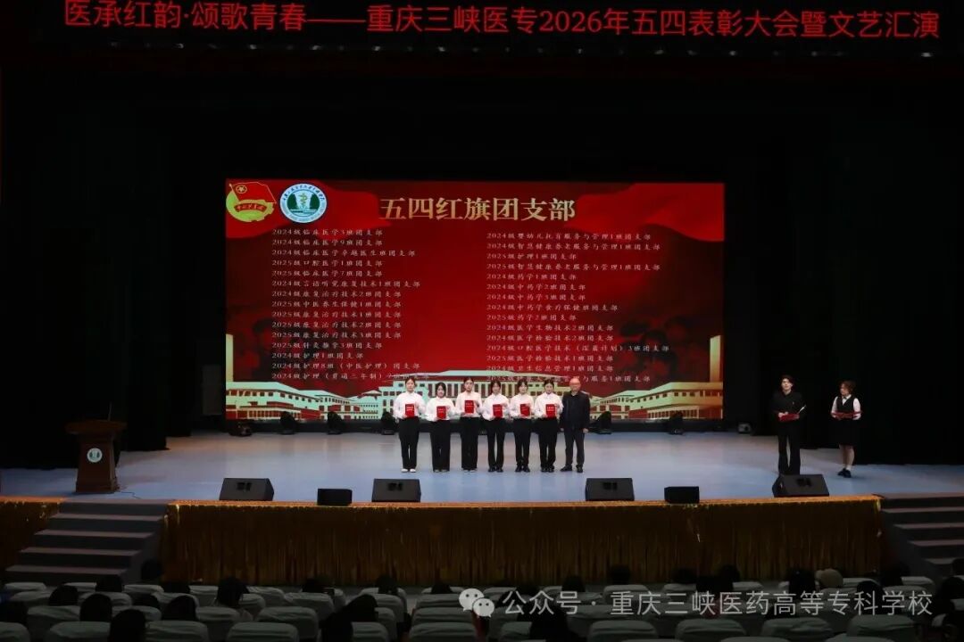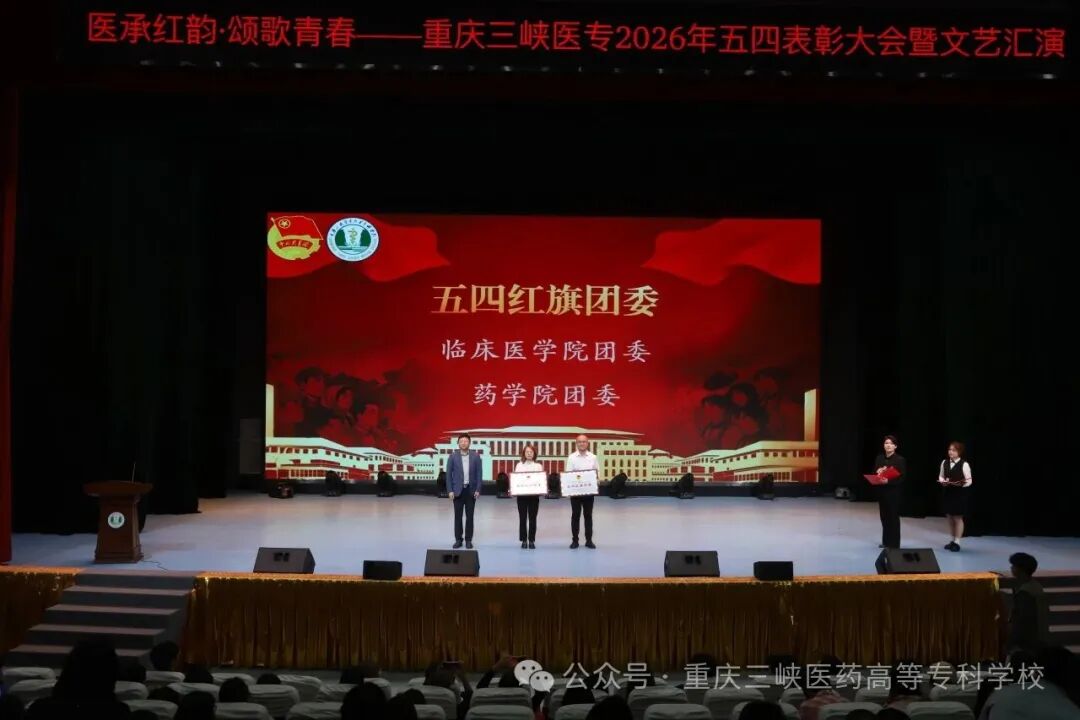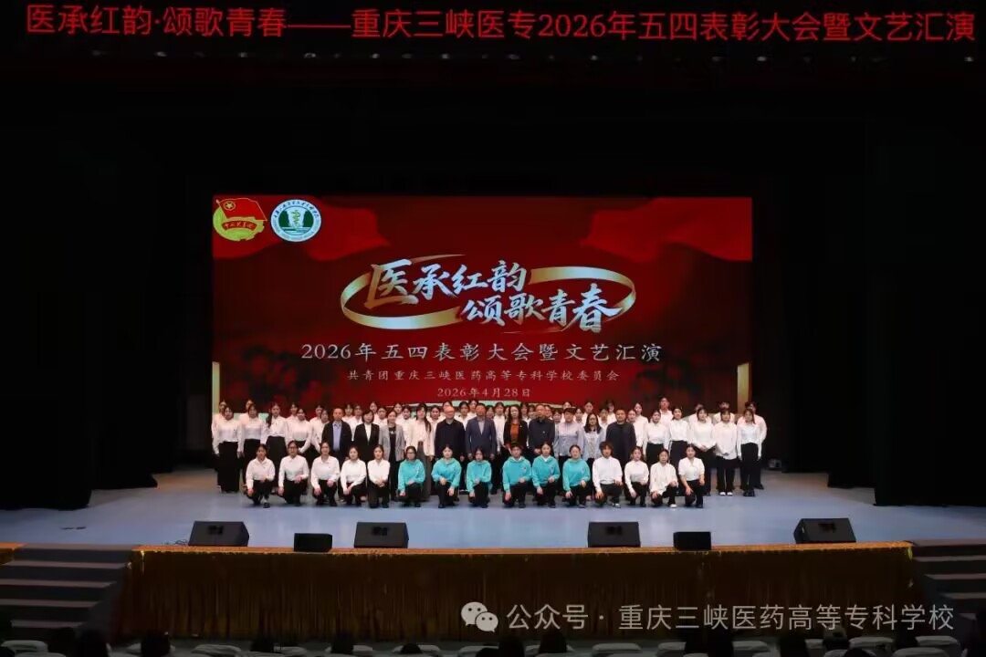 为赓续百年五四精神,厚植红色育人根基,凝聚新时代医学生奋进力量,4月28日下午,我校“医承红韵,颂歌青春”2026年五四表彰大会暨文艺汇演在学术中心演播大厅隆重举行。学校党委副书记、校长冉隆平,党委委员、副校长邓雪松出席大会,党委学工部、工会、团委、保卫处负责人,各学院党总支书记,附属中医院团委书记,各分团委书记、副书记及800余名青年代表齐聚一堂,共赴青春之约,共承红色薪火,共践红医使命。
