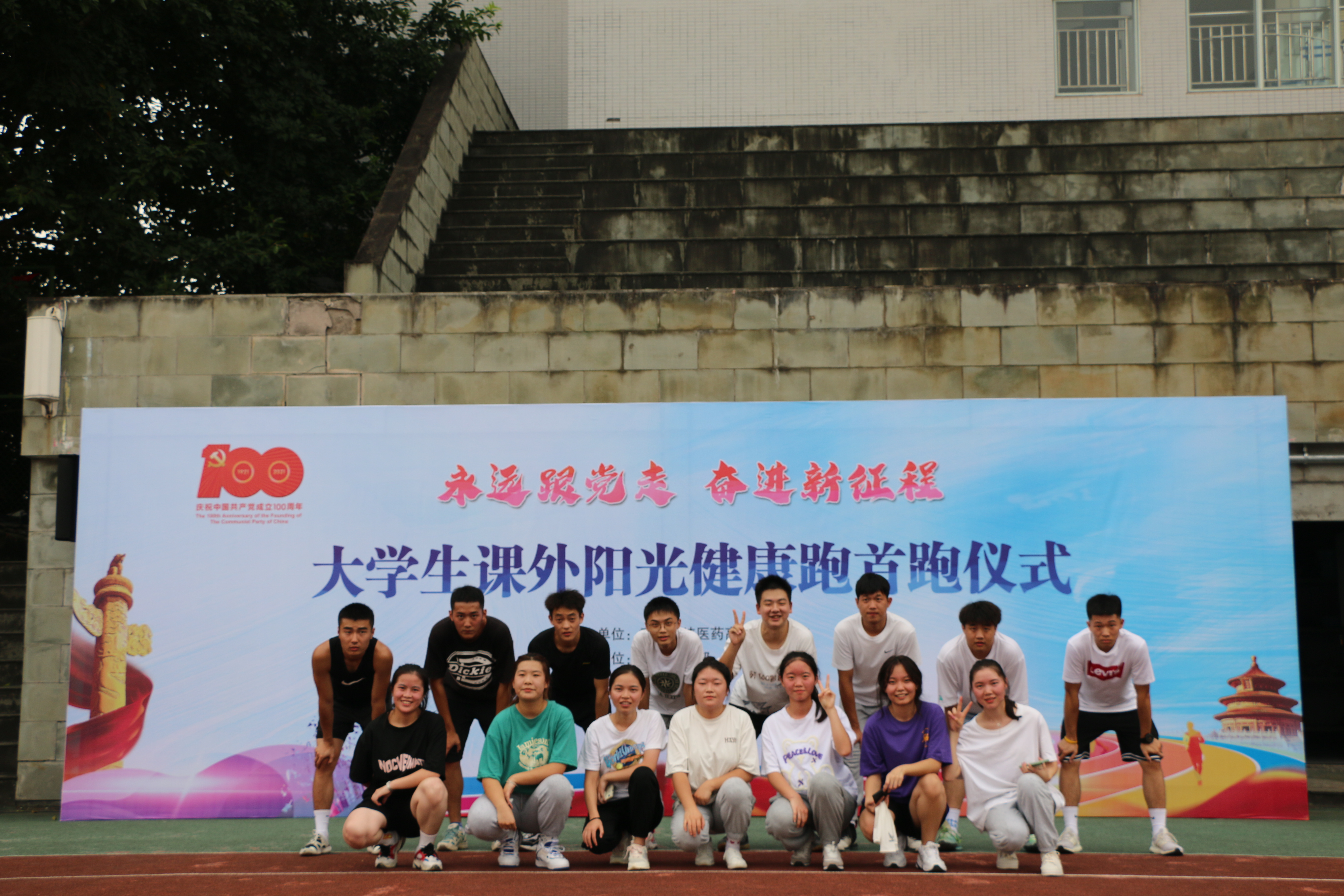 为贯彻落实习近平总书记关于教育、体育的重要论述,在喜迎全国25个省市近8000名新生报到的日子里,9月14日下午公共基础部在学校田径场,举办了以“永远跟党走,奋进新征程”为主题的大学生阳光健康跑活动首跑仪式,用健康运动的方式欢迎2021级同学的到来,由此,健康跑活动正式启动。全校共有600多名师生参加了首跑仪式。