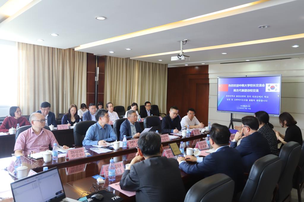 4月19日,中韩大学校长交流会韩方代表团—韩国世韩大学校长李昇勲、京东大学校长全晟鎔一行6人来校访问交流。交流会在学校行政楼410会议室进行,学校党委副书记冉隆平、副校长沈力出席会议,图情信息中心、教务处、护理学院、中医学院、医学技术学院、临床医学院以及基础医学部等相关部门负责人参加会议。会议由沈力主持。