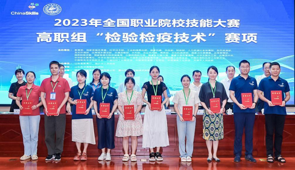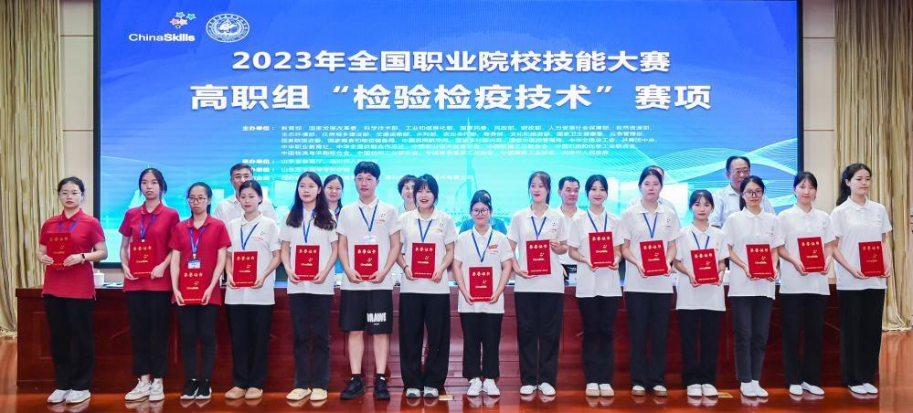 8月4日—7日,全国职业院校技能大赛高职组“检验检疫技术”赛项在山东医学高等专科学校顺利举行,医学技术学院院长郝坡带队参赛。经过激烈角逐,医学检验技术专业陈紫琦、曾春、何玉萱三位同学以总分第二名的成绩斩获团体一等奖,邓晶荣、牟凤林老师获评“优秀指导教师”。