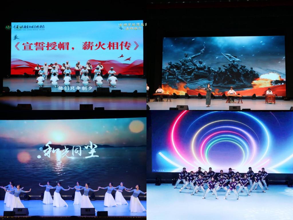 五四汇演的画卷以“青春热血”“青春色彩”“青春力量”“青春梦想”四个篇章徐徐展开。由公共基础部带来的健美啦啦操《Cool Girls》拉开序幕,医学技术学院《峥嵘岁月,与梦同行》、护理学院《奋斗点亮青春,拼搏铸就梦想》、药学院《闪“药”青春》视频方式展示了团学风采,临床医学院以《医路格桑映雪域,援藏服务暖乡心》为题汇报了全国“三下乡”社会实践优秀团队的故事,中医学院以3名学子救人的案例演绎情景剧《你为什么学医》为现场师生进行了生动的医学教育,公卫学院带来的《守护基层健康,争当公卫能手》展示了公卫人的担当,大学生艺术团、学生社团、青年代表通过歌曲《有我》、情景剧《新中国的来信》、戏曲《红灯记》、气功表演《红梅赞》等多种形式进行美育成果汇报,展示了三峡医专学子凝心聚力、奋力拼搏、奋勇争先的矢志决心和昂扬奋进的青春风采。期间,还进行了五四红旗团总支、五四红旗团支部、优秀青年志愿者、优秀社团的颁奖仪式。