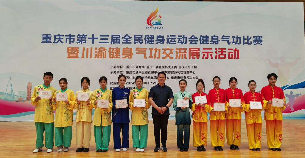 5月10日—12日,由重庆市体育局、重庆市委直属机关工委、重庆市总工会主办的重庆市第十三届全民健身运动会健身气功比赛在石柱县体育馆举行,我校健身气功代表队在李华斌老师带领下参赛,荣获3项第一名、4项第二名的好成绩。