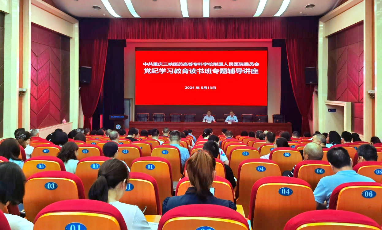 为深入学习贯彻习近平总书记关于党纪学习教育的重要讲话和重要指示精神,帮助全院党员干部更加准确地掌握《中国共产党纪律处分条例》(以下简称《条例》)的主旨要义和规定要求,5月13日下午,医院党委举办党纪学习教育读书班专题辅导讲座,邀请万州区委党校一级调研员、重庆科技大学硕士生导师朱美丞教授作专题辅导讲座。医院领导班子,各党支部书记、党支部委员,临床科室主任、护士长,职能部门负责人,党员代表共计200余人参加讲座,讲座由医院党委书记赖登祥主持。