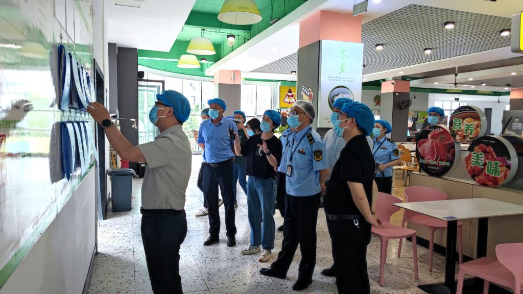 张斌通过看现场、查资料、提问题、听汇报等方式,详细了解了学校在食品安全管理方面的实际情况,仔细检查了加工操作环境卫生、食品进货查验、食品留样规范以及人员健康管理、虫鼠害防控等方面的工作,并认真听取了在落实食品安全管理责任和管理制度方面的监管举措。对学校建立“问题反馈平台”及在校园食品安全工作方面所取得的成效给予肯定,同时对推进食品安全“两个责任”机制落地、落细、落实提出进一步要求。