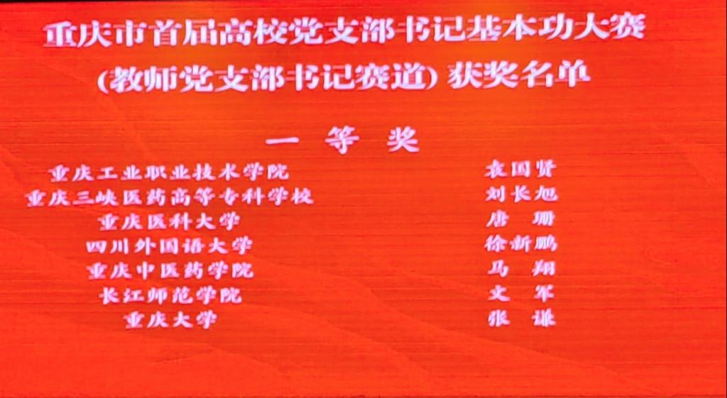 (一)获得重庆市首届高校党支部书记基本功大赛一等奖