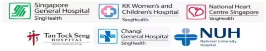 新加坡卫生部控股公司所属三大医疗集团的公立医疗机构:板桥医院、国立大学医院、陈笃生医院、樟宜综合医院、竹脚妇幼医院、全国心脏中心、新加坡中央医院等。