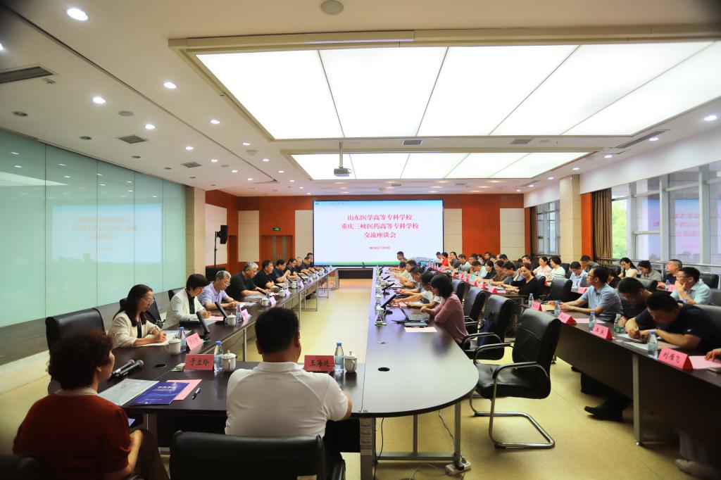 7月9日,山东医学高等专科学校校长葛永宏一行60人来校考察交流,双方在学术中心205会议室举行座谈会。学校党委副书记、校长冉隆平,副校长邓雪松,学校党政办公室、教务处、人事处、基建后勤处、科技处、保卫处部门负责人参加座谈会。会议由邓雪松主持。