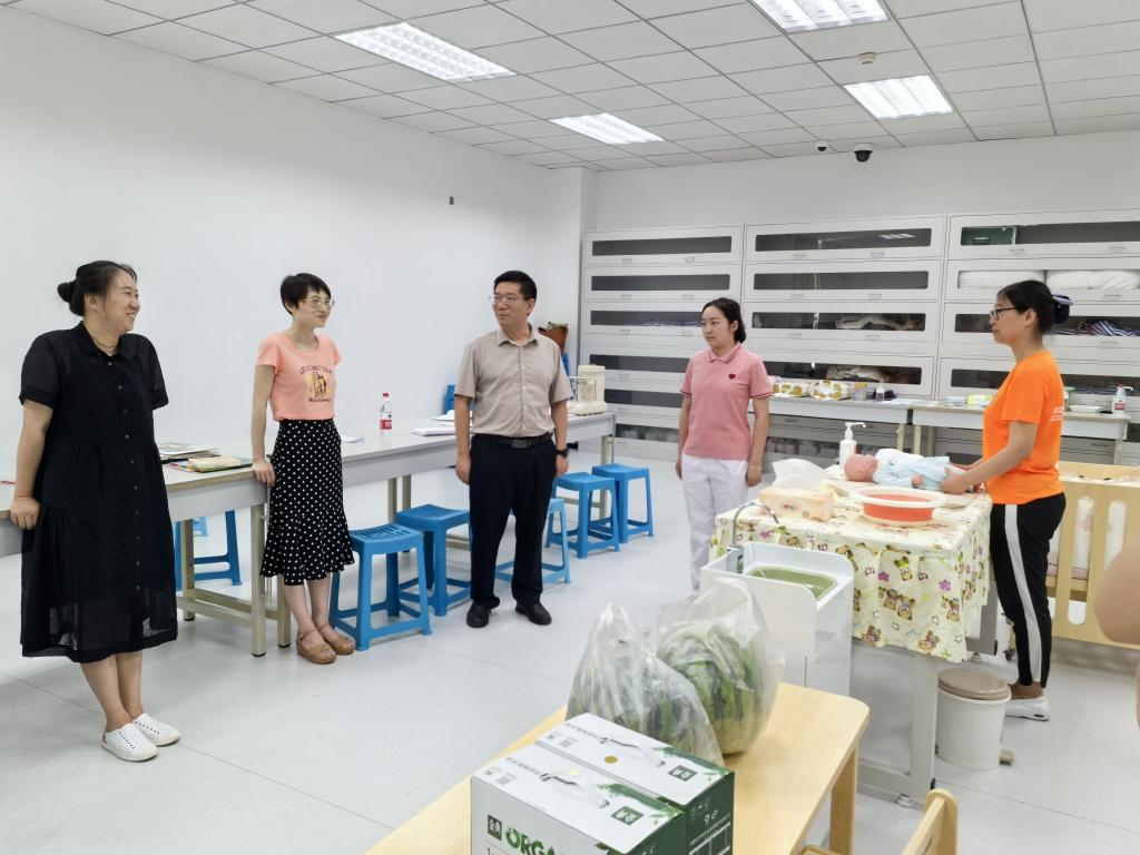 7月22日上午,副校长苏绪林一行前往护理学院,亲切看望正在积极备战的全国托育职业技能竞赛、“一带一路”暨金砖国家技能发展与技术创新大赛和第二届幼儿照护职业技能大赛师生,并送上了西瓜、牛奶等营养品。教务处负责人陪同走访。