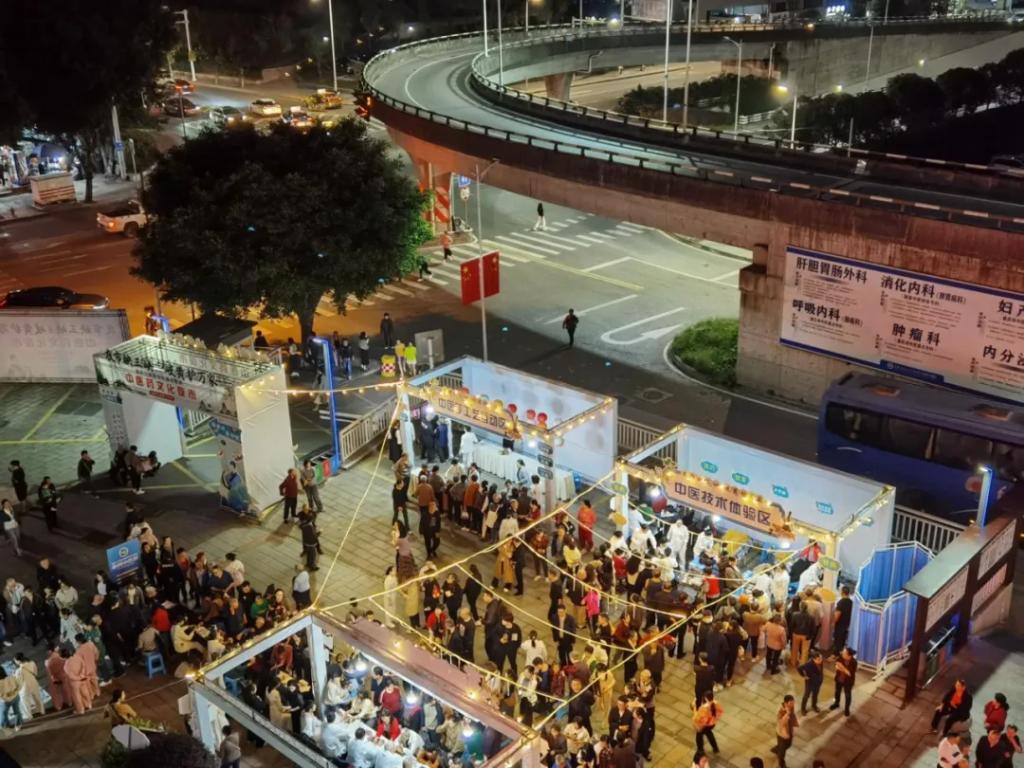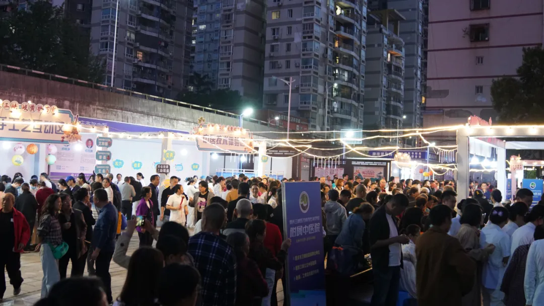 现场摩肩接踵、熙熙攘攘,每个逛区都是人气高涨。大家都沉浸在这场中医文化的盛宴中,或驻足欣赏,或耐心排队,或亲自体验。现场的热闹气氛与市民们的热情,在霓虹灯的映衬下,构成了三峡之城最美好的夜景。