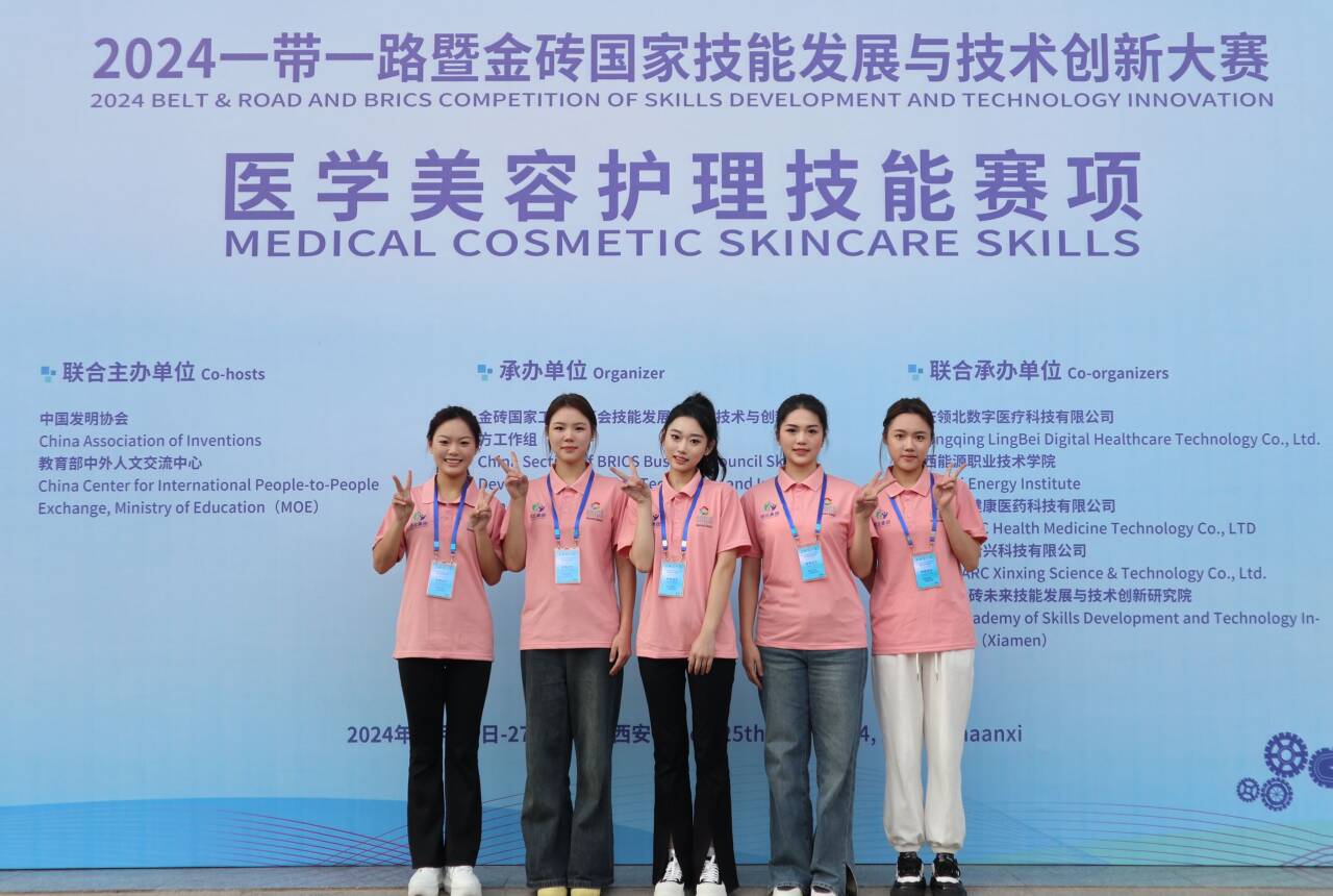 在10月25-27日,2024年一带一路暨金砖国家技能发展与技术创新大赛医学美容护理技能赛项在陕西能源职业技术学院成功举办。经过激烈角逐,我校中医学院医学美容技术专业吴晏妮、单誉同学分获一等奖,印鑫利、吴淼同学分获二等奖,丁瑶同学获得三等奖。张薇、刘子琦老师获优秀指导教师奖,我校获得最佳组织奖。
