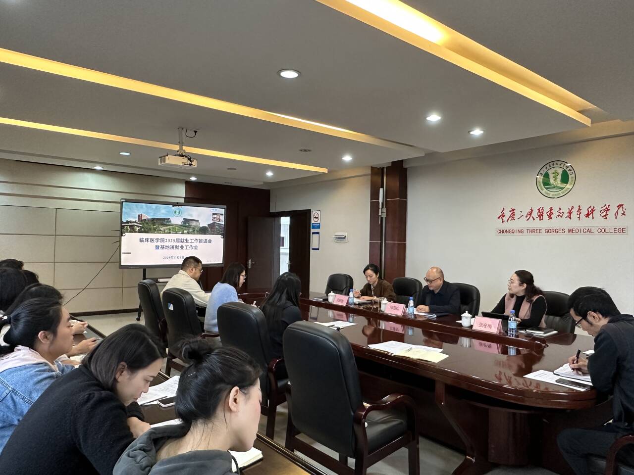 为进一步落实党中央、国务院“稳就业”“保就业”的决策部署,促进2025届毕业生就业工作的稳步推进,临床医学院于11月8日上午在行政楼410会议室召开2025届就业工作推进会暨基地班就业工作会。学校副校长邓雪松、临床医学院副院长张冬梅、党总支专职副书记闫丽丽以及25届毕业班辅导员和学院学管办全体员工线下参会,各基地班医院分管副院长、科教科负责人及辅导员等线上参会,闫丽丽主持会议。
