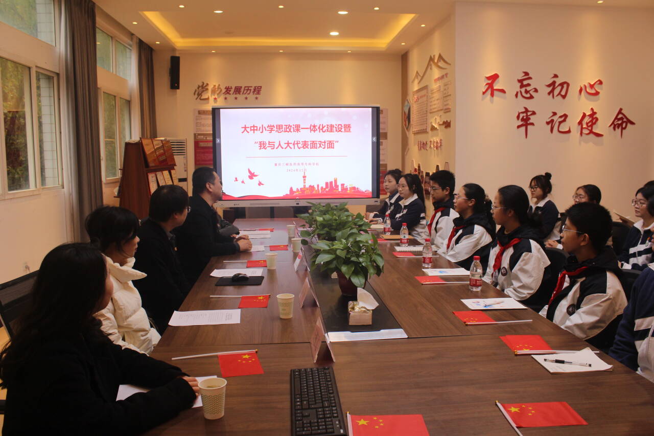 为深学笃行习近平新时代中国特色社会主义思想,引导广大青少年准确理解全过程人民民主内涵实质,有序参与社会主义民主政治实践,12月5日下午,马克思主义学院在三教307会议室举办了大中小学思政课一体化建设暨“我与人大代表面对面·校园对话”活动。本次活动邀请了万州区第六届人大代表、重庆三峡学院环境与化学工程学院兰波副教授担任主讲人,马克思主义学院思政教师代表以及青年学习社团学生代表、万州上海中学师生共计26人参与。活动由马克思主义学院党总支书记、院长陈爱文主持。
