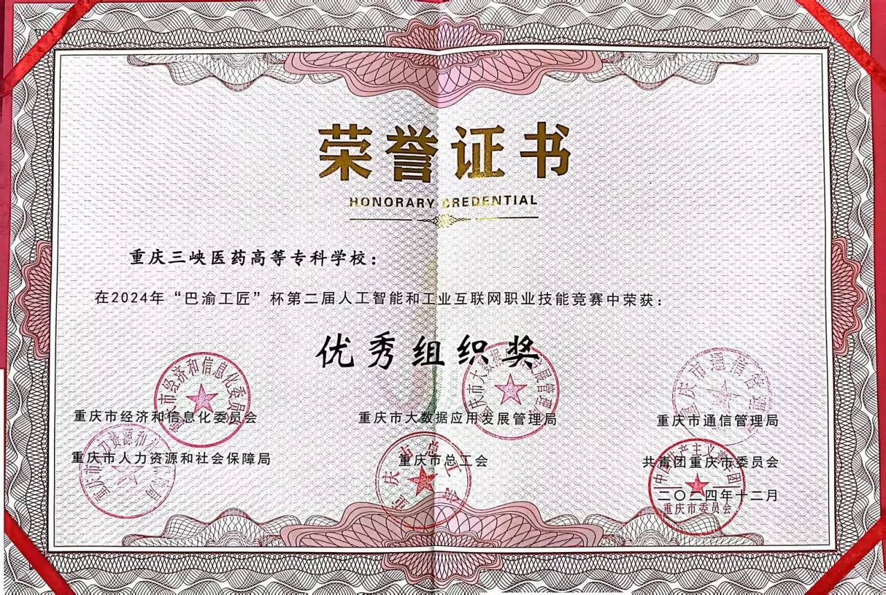 近日,“巴渝工匠”杯重庆市第二届人工智能和工业互联网职业技能竞赛人工智能训练师赛项奖项颁发。我校在此项比赛中,取得系列荣誉。其中,重庆三峡医药高等专科学校荣获“优秀组织奖”,公共卫生与管理学院教师任鹏获得“优秀指导教师”荣誉称号,2023级健康大数据管理与服务1班学生罗娅、黎炬泓获得二等奖(第二名),萧泓圣、陈昌荣获得优胜奖(第七名)。