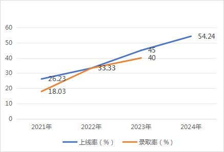 2021-2024年生物工程本科班考研上线率、录取率对比图