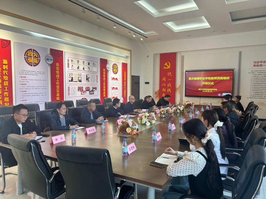 为充分发挥学校优势专业和行政治理效能的辐射引领作用,加强校校合作交流,重庆健康职业学院组织9名教师到我校参加为期1个月的顶岗挂职锻炼。4月7日下午,在学术中心201会议室举行了简短而隆重的挂职开班仪式,学校党委委员、副校长邓雪松,合作交流中心、护理学院、药学院、公卫学院等相关部门负责人参加开班仪式,仪式由合作交流中心主任李魁华主持。