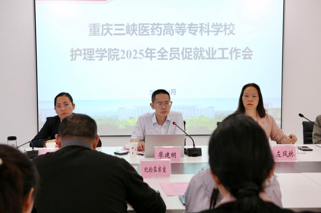 为全面落实学校关于全员促就业工作的相关要求,齐心协力打赢2025届毕业生就业攻坚战,护理学院于4月22日在B6-315会议室召开2025年全员促就业工作会。学校党委委员、纪委书记廖建明,纪检监察室、审计处和基础医学部负责人及联络员,护理学院负责人,各二级科室、教研室主任、专业带头人参加会议,会议由廖建明主持。