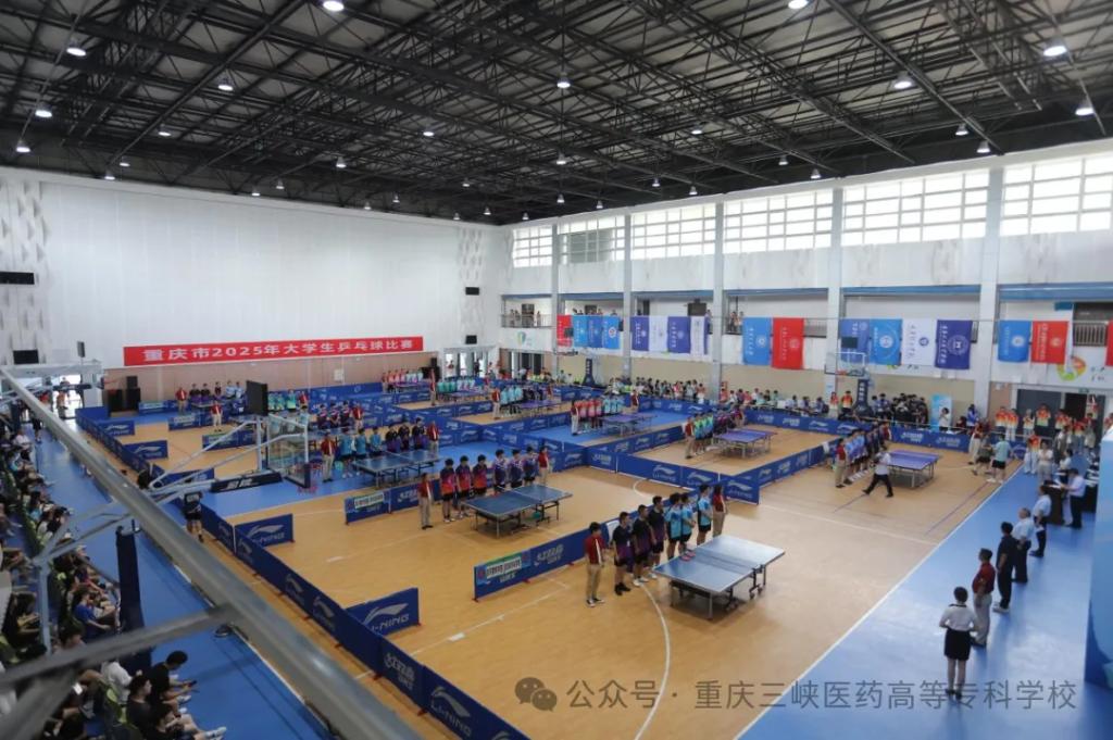 5月21日-25日,重庆市2025年大学生乒乓球比赛在我校A区体育馆开赛。本次比赛由重庆市教育委员会主办,重庆三峡医药高等专科学校承办,重庆市学生科学体育艺术发展中心协办。为保障赛事专业性,A区体育馆配置了12张专业球台及智能计时设备,并划分清晰的功能区域,为选手提供优质竞技环境。