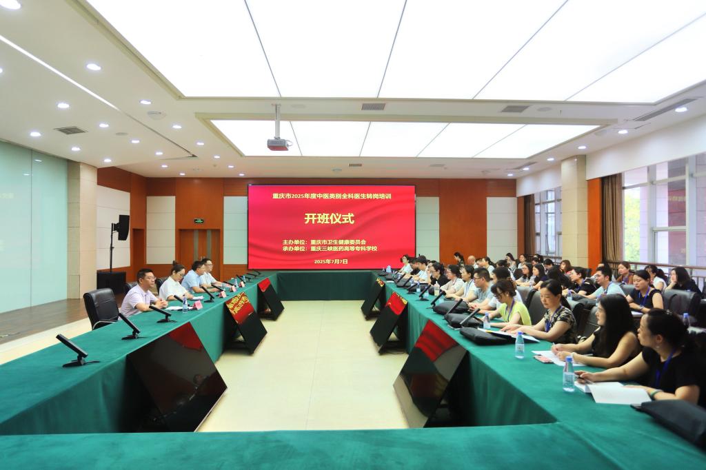 7月7日上午,重庆市2025年中医全科医生转岗培训开班仪式在我校学术中心205会议室举行。重庆市卫健委中医综合处处长姜玲,学校党委副书记、校长冉隆平,学校党委委员、副校长苏绪林,合作交流中心工作人员,授课教师代表和全体学员参加开班仪式。开班仪式由苏绪林主持。