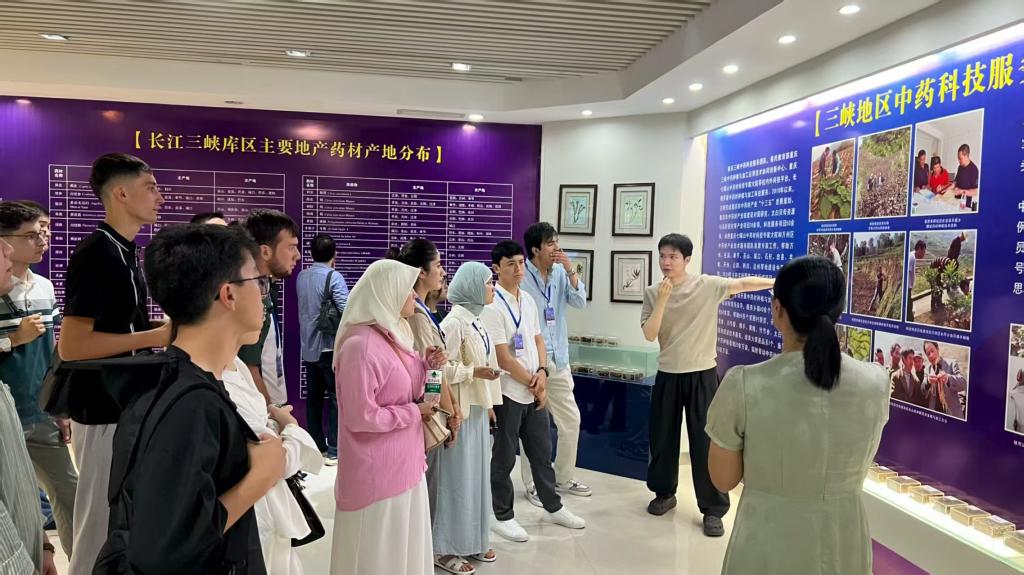 上午的旅程始于中药科技馆。学员们沉浸于浩瀚的中药世界,通过丰富珍贵的中药材标本、详实清晰的历史脉络展示及现代化互动装置,系统性地了解了中药的起源、发展、分类、国内产地分布、三峡地区中药材资源、传统经验鉴定及现代科研前沿,对中医药的科学体系与文化根基建立了多方位认知。