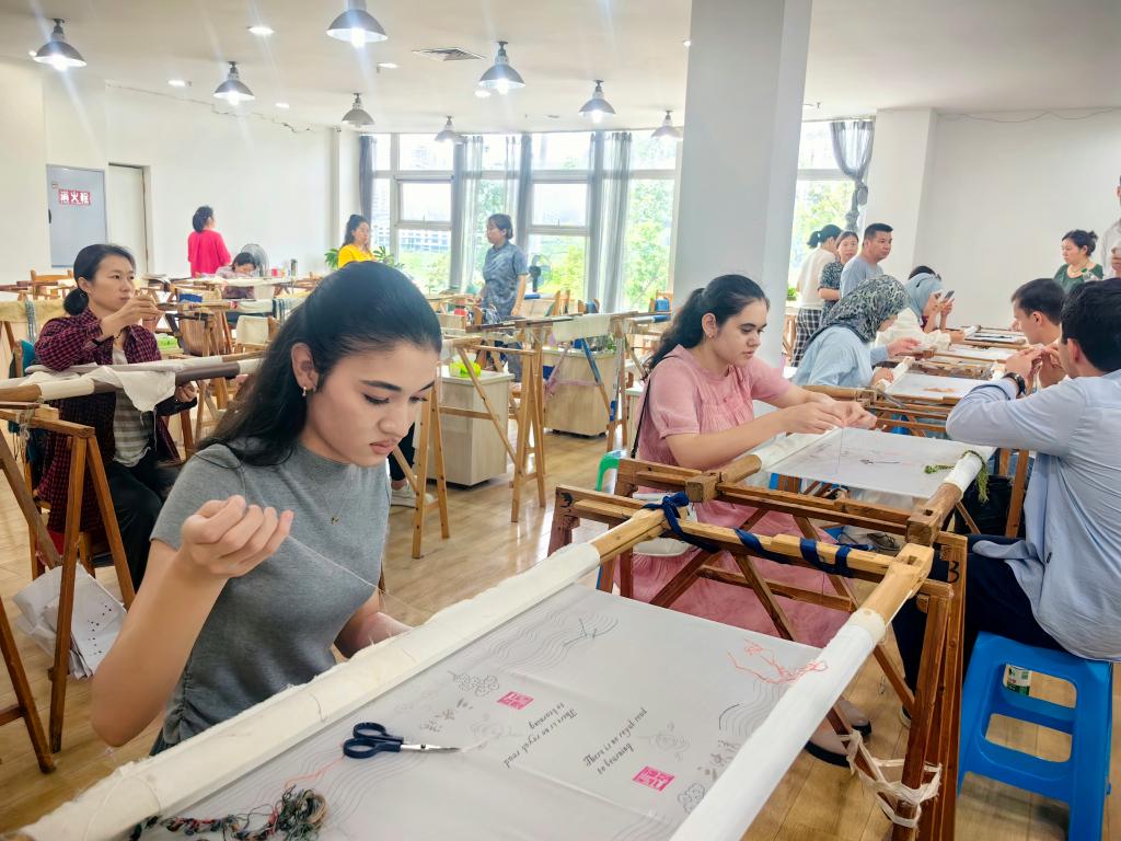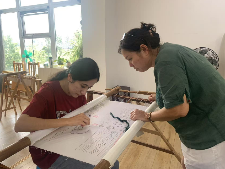 下午,研修课堂转换至三峡绣艺术传承基地。三峡绣是中国重庆市万州区的市级非物质文化遗产,以其精湛的刺绣技法和表现三峡壮丽风光、巴渝独特风情而闻名。