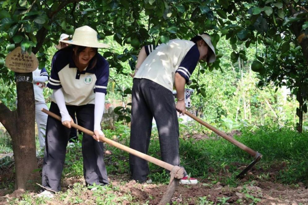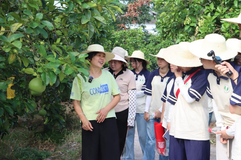在龙滩村的柚园中,“峡医青苗”队员们实地探寻梁平柚深加工产业对乡村振兴“产业升级”的强劲带动作用。柚子地中,队员们挥洒汗水,协助果农完成除草、修枝与疏果等农活。果农现场介绍的“捕蝉增收”生态模式令队员们惊叹不已——通过活蝉捕捉与销售,不仅有效减少虫害,更延伸出高蛋白食品产业链,使农户收入成倍增长!柚子营销中心,琳琅满目的精油、果脯、酵素等深加工产品,生动诠释着“三产融合”如何激活乡村经济。这场沉浸式调研让青年学子深刻领悟:乡村振兴的道路上,既需要我们秉持精耕细作的务实态度,扎实做好每一项基础工作,更需要不断引入科技与知识的持续赋能,用现代科技和先进理念为传统农业注入新的生机与活力,使其在新时代的背景下焕发出勃勃生机。